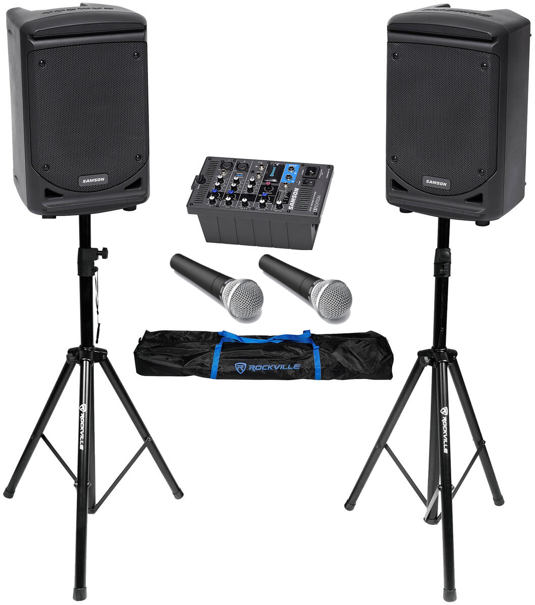 1 st SAMSON XP-300 - 2 st högtalare & mixer - 300 watt | 2 st Högtalarstativ | 2st Shure SM58 + kabel
